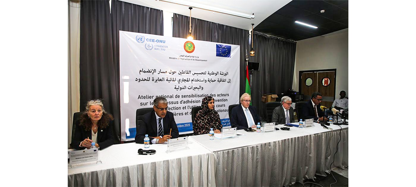 افتتحت معالي وزيرة المياه والصرف الصحي، السيدة آمال بنت مولود، صباح اليوم الثلاثاء في نواكشوط، بحضور معالي وزير الطاقة والنفط، السيد محمد ولد خالد، ورشة وطنية لتحسيس الفاعلين حول مسار انضمام موريتانيا إلى اتفاقية حماية واستخدام المجاري المائية العابرة للحدود والبحيرات الدولية.