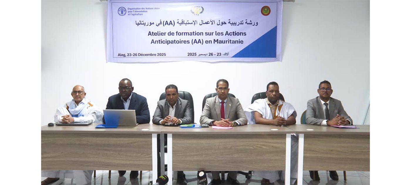 تتواصل لليوم الثاني على التوالي أعمال الورشة التدريبية حول الإجراءات الاستباقية في مجال التصدي للكوارث والتأثيرات السلبية للتغيرات المناخية في موريتانيا، المنظمة من طرف مفوضية الأمن الغذائي بالتعاون مع منظمة الأمم المتحدة للأغذية والزراعة (الفاو)