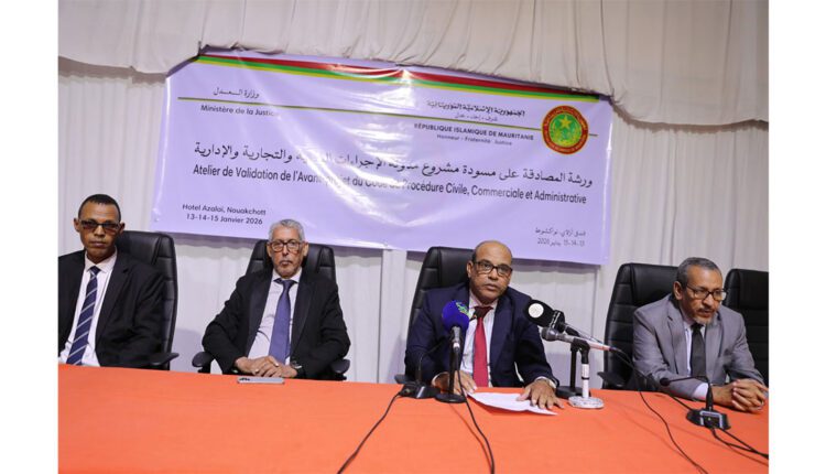 اختتم مساء اليوم الخميس بانواكشوط الغربية أعمال ورشة للمصادقة على مشروع مسودة قانون الاجراءات المدنية والتجارية والإدارية، تحت إشراف مستشار وزير العدل المكلف بالتعاون والمتابعة والتقييم السيد أعمر ولد القاسم.