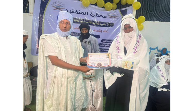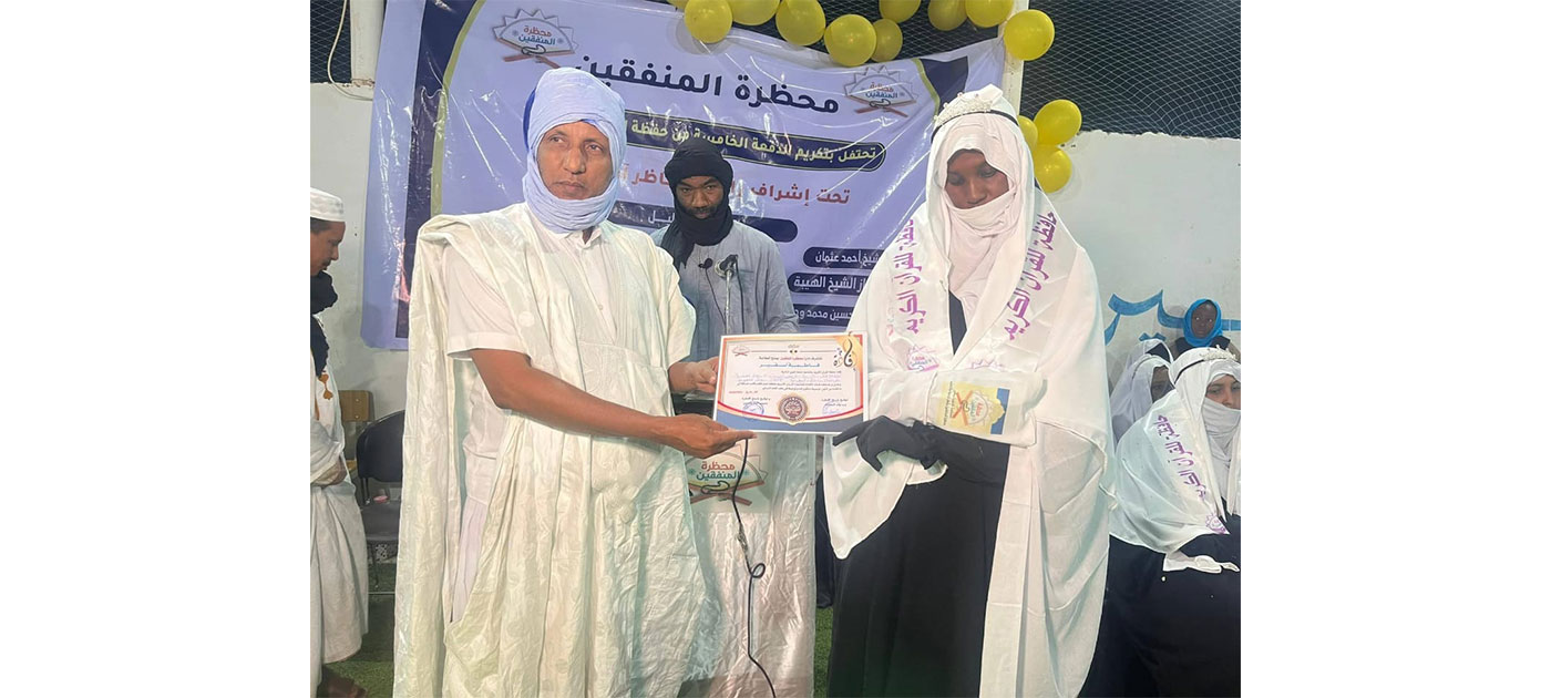 نظمت محظرة المنفقين، الليلة البارحة في مدينة أطار، حفلا لتكريم مجموعة من طلابها أتموا حفظ كتاب الله العزيز، وذلك بحضور الحاكم المساعد للمقاطعة، السيد الوالد جمال الدين الفروه.