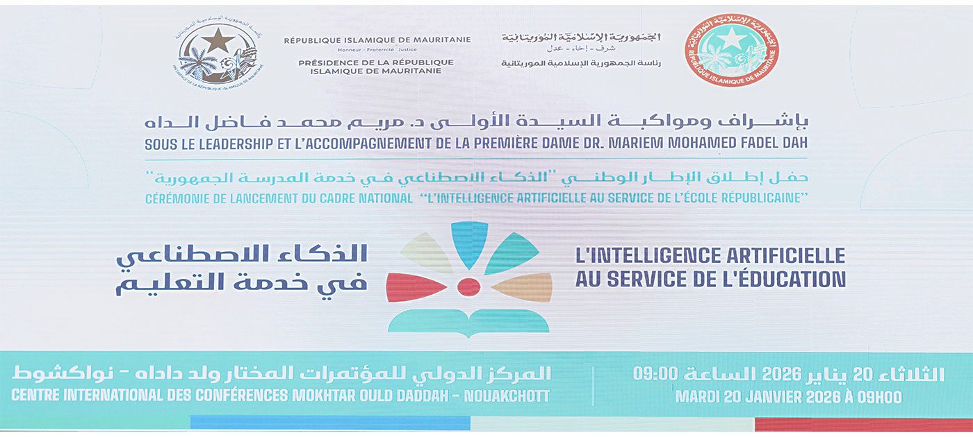 ومن هذا المنطلق، أشرفت معالي السيدة الأولى الدكتورة مريم محمد فاضل الداه، اليوم الثلاثاء بقصر المؤتمرات “المختار ولد داداه”، على إطلاق مبادرة “الذكاء الاصطناعي في خدمة التعليم”، في خطوة تعكس إدراكا عميقا لأهمية الاستثمار في التعليم الرقمي، وحرصا متواصلا على تمكين الأطفال، عموما وذوي الاحتياجات الخاصة، من أدوات المعرفة الحديثة، ضمن رؤية إنسانية تجعل من التكنولوجيا وسيلة للإنصاف والتكافؤ، لا مصدرا للفجوة أو الإقصاء.