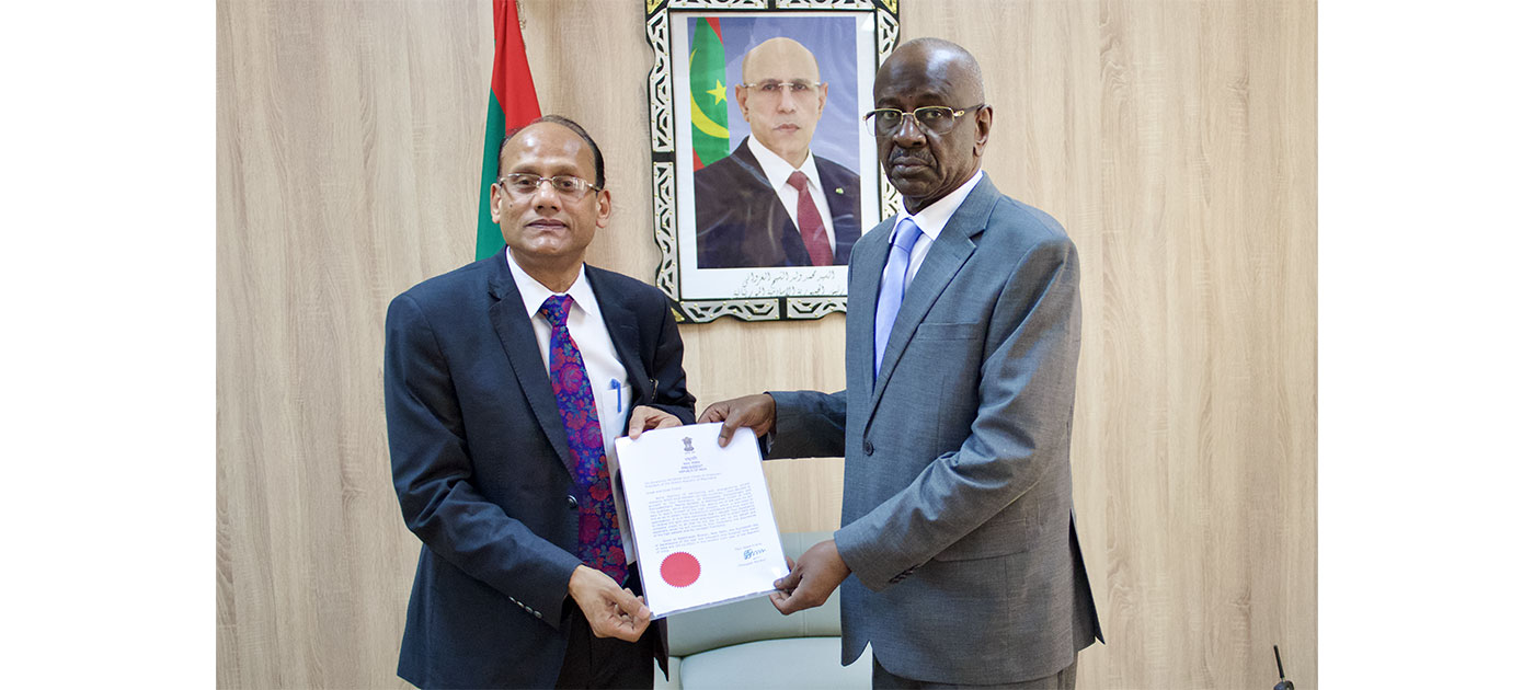 وخلال اللقاء، تسلم معالي الوزير من الدبلوماسي الهندي نسخة من أوراق اعتماده بصفته سفيرا فوق العادة وكامل السلطة لجمهورية الهند لدى الجمهورية الإسلامية الموريتانية.