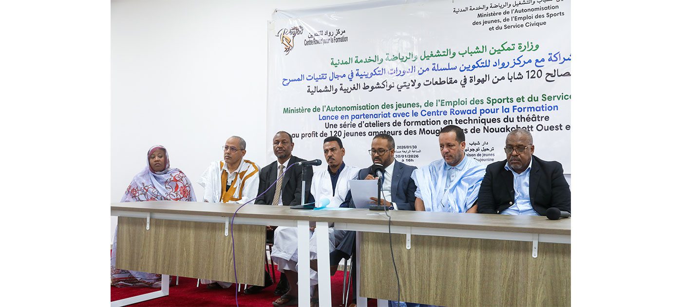 أطلقت إدارة الشباب التابعة لوزارة تمكين الشباب والتشغيل والرياضة والخدمة المدنية بالتعاون مع “مركز رواد للتكوين”، مساء اليوم الجمعة بمقاطعة توجنين، سلسلة من الدورات التكوينية في مجال تقنيات المسرح وكتابة السيناريو والعروض المسرحية، لصالح 120 شابا من ولايتي نواكشوط الغربية والشمالية.