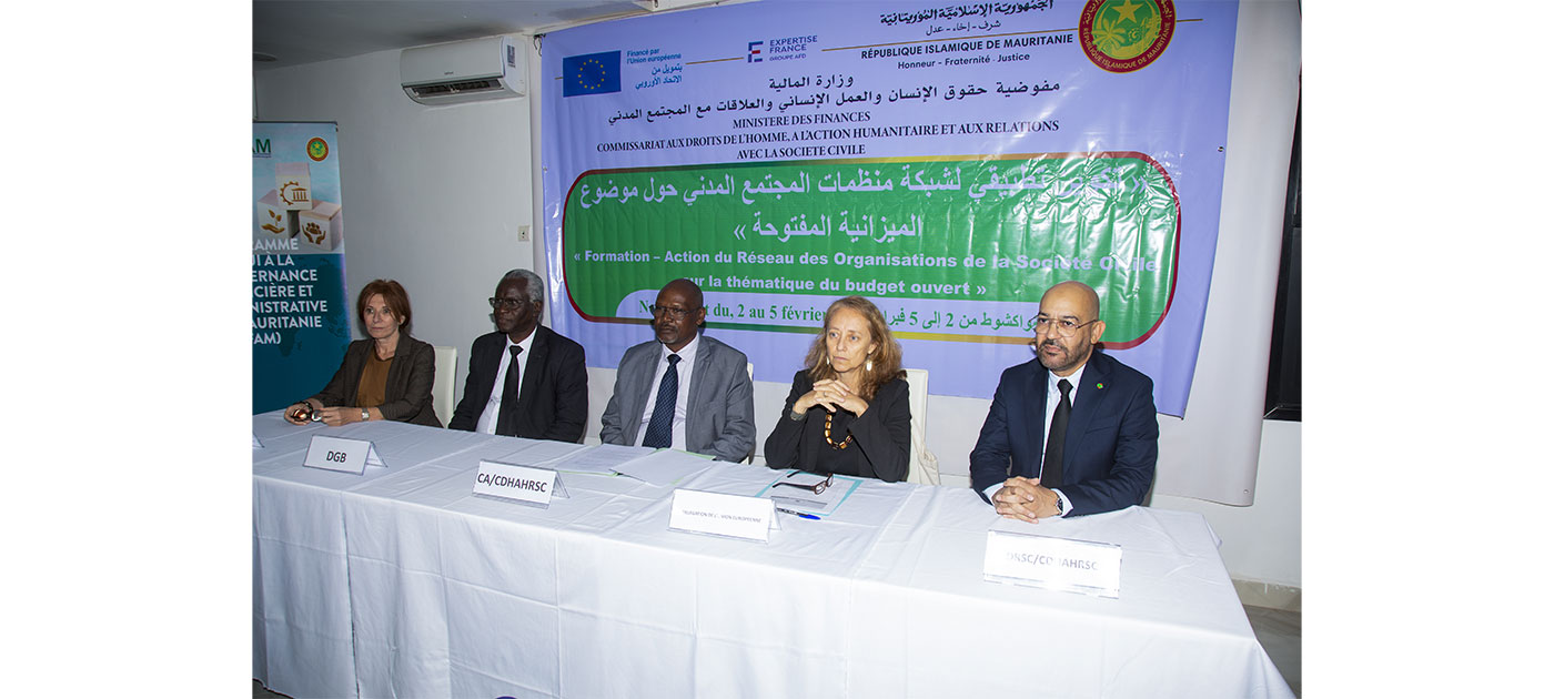 وتهدف هذه الدورة المنظمة بدعم من الاتحاد الأوروبي عبر برنامج دعم الحكامة الإدارية والمالية في موريتانيا التابع لمؤسسة الخبرة الفرنسية، لتمكين منظمات المجتمع المدني من الاضطلاع بدور أكثر فاعلية للمساهمة في تحديد السياسات العامة وتنفيذها وتقييمها، وتعزيز الشفافية والمساءلة في إدارة موارد الميزانية العامة للدولة.