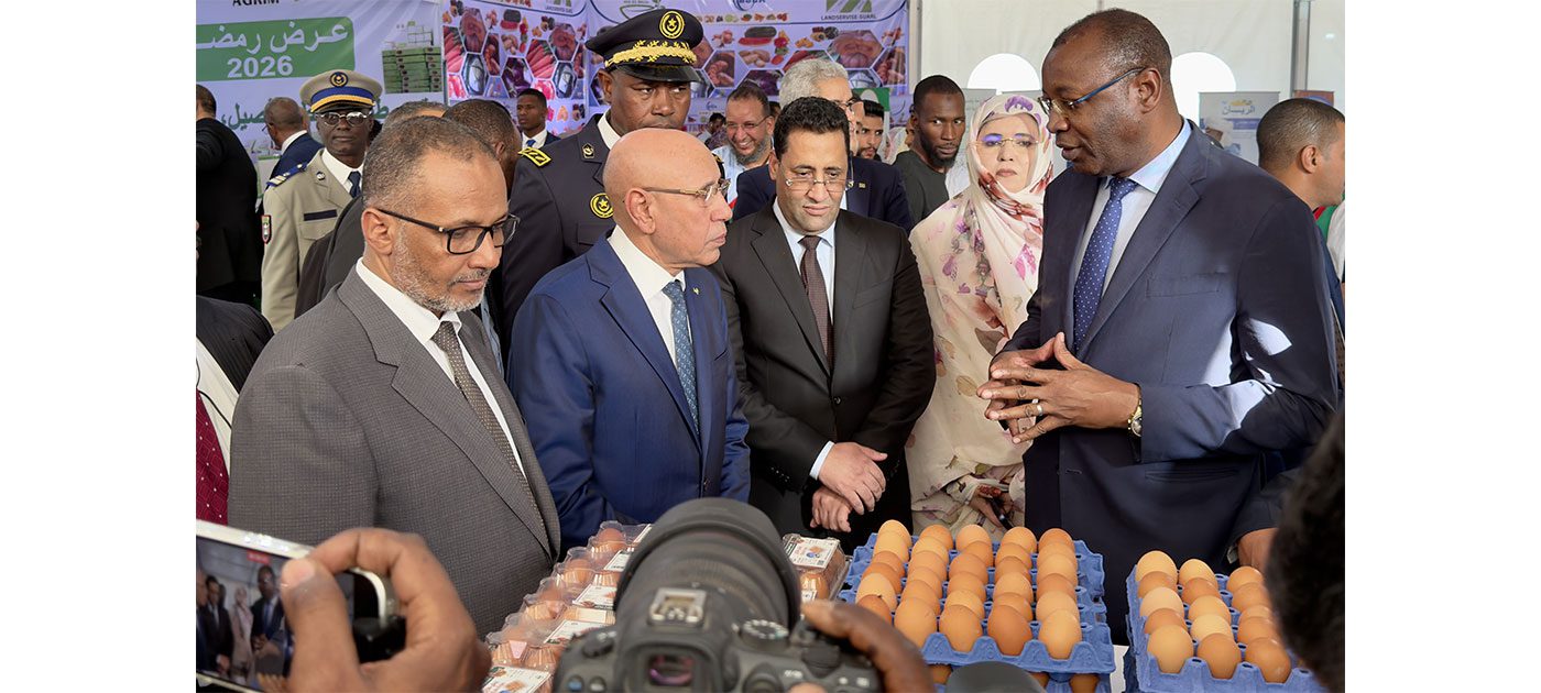 وزار فخامة رئيس الجمهورية المعرض النموذجي (معارض رمضان 2026) المقام في ساحة مطار نواكشوط القديم، حيث أطلق رسميا عملية توفير المواد الاستهلاكية الأساسية بأسعار مدعومة، في مبادرة تنفذها الحكومة بالشراكة مع القطاع الخاص.