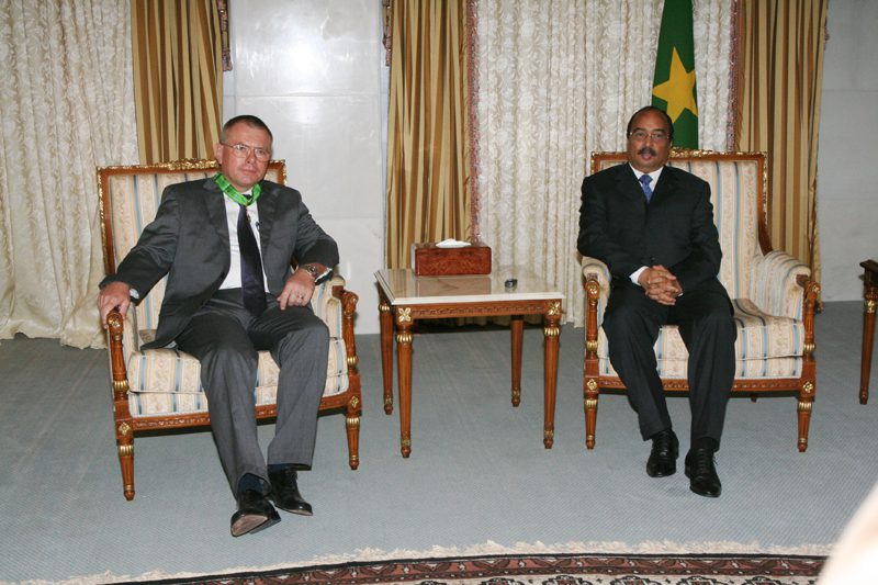 استقبل رئيس الجمهورية السيد محمد ولد عبد العزيز صباح اليوم الثلاثاء بالقصر الرئاسي في نواكشوط سعادة السيد أبرهارد اتشانز، سفير جمهورية المانيا الاتحادية المعتمد لدى موريتانيا وذلك بمناسبة انتهاء مأموريته سفيرا لبلاده في نواكشوط.