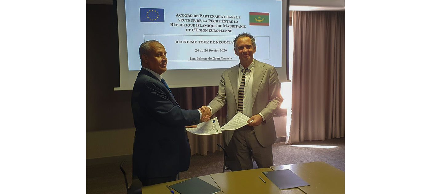 اختُتمت مساء أمس الخميس بمدينة لاس بالماس بإسبانيا أعمال الاجتماع التفاوضي بين موريتانيا والاتحاد الأوروبي حول تحيين بروتوكول الشراكة في قطاع الصيد، وذلك بتوقيع محضر الاجتماع من طرف رئيسي الوفدين، في خطوة تعكس استمرار الحوار الفني بين الجانبين لتعزيز التعاون في مجال الصيد البحري.