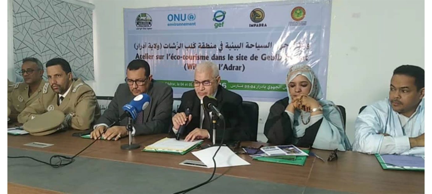 أشرف والي آدرار، السيد عبد الله ولد محمد محمود، اليوم الأربعاء في أطار، على افتتاح ورشة تكوينية حول السياحة البيئية في منطقة كلب الريشات، منظمة من طرف مشروع التسيير المندمج للمحميات الطبيعية في المناطق الجافة بموريتانيا (IMPADRA) التابع لوزارة البيئة والتنمية المستدامة.