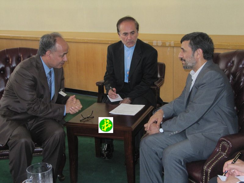 عقد معالي الوزير الأول، الدكتور مولاي ولد محمد لقظف ، مساء أمس في نيويورك جلسة عمل مع الرئيس الإيراني محمود أحمدي نجاد، خصصت لبحث التعاون الثنائي بين بلادنا والجمهورية الإسلامية الإيرانية.