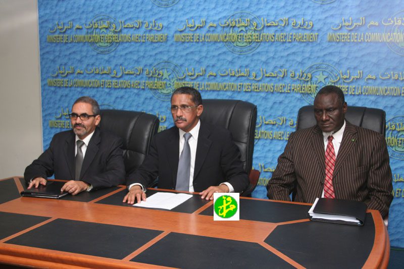 وشارك في المؤتمر الصحفي كل من وزير الدولة للتهذيب الوطني والتعليم العالي والبحث العلمي السيد احمد ولد باهيه ووزير الطاقة والنفط السيد وان ابراهيما لامين، ووزير الاتصال والعلاقات مع البرلمان الأستاذ حمدي ولد محجوب.