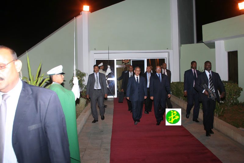 و ودع رئيس الجمهورية في المطار من طرف الوزير الأول الدكتور مولاي ولد محمد لقظف وأعضاء الحكومة والشخصيات السامية في الدولة و والي نواكشوط ونائب رئيس مجموعتها الحضرية.