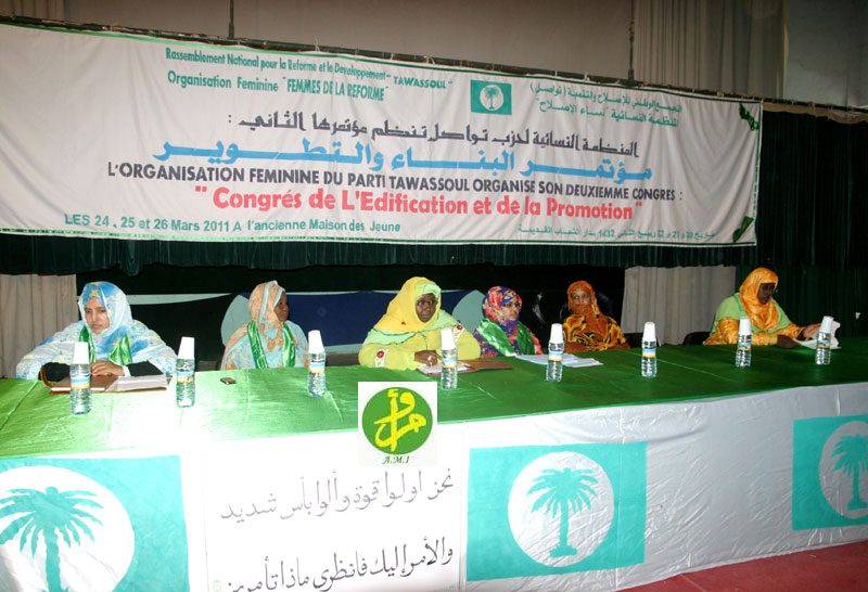 عقدت المنظمة النسائية في حزب التجمع الوطني للاصلاح والتنمية( تواصل) اليوم الخميس في نواكشوط مؤتمرها الثاني تحت شعار “البناء والتطوير” بحضور وفود نسائية من المغرب والسينغال ومالي.
