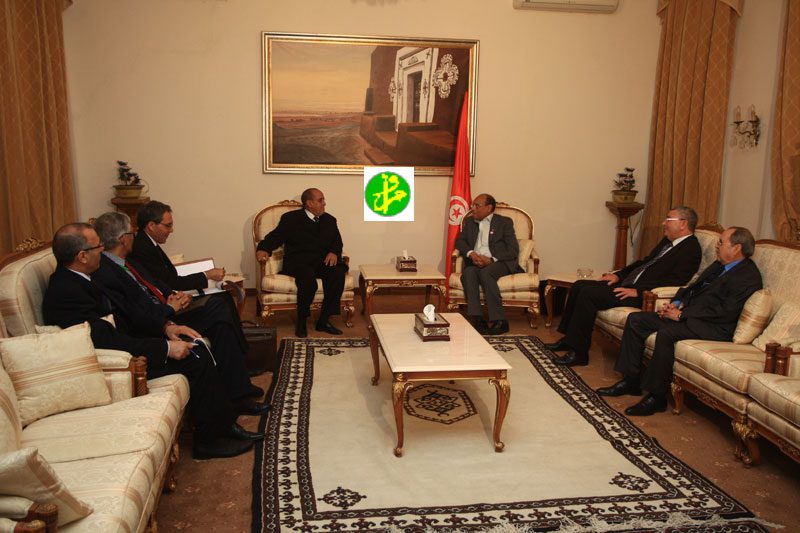 أجرى الرئيس التونسي السيد محمد المنصف المرزوقي صباح اليوم السبت بمقر اقامته في نواكشوط، مباحثات مع النائب الاول لرئيس الجمعية الوطنية السيد العربي ولد جدين وذلك ضمن برنامج الزيارة الرسمية التي يؤديها الرئيس التونسي لبلادنا حاليا.