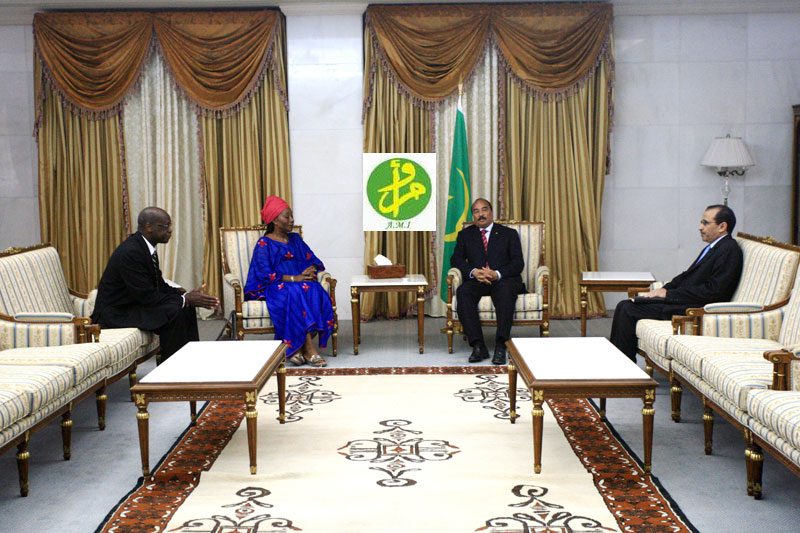 استقبل رئيس الجمهورية السيد محمد ولد عبد العزيز صباح اليوم الثلاثاء بالقصر الرئاسي في نواكشوط السيدة كاترين ديب آتوكي رئيسة اللجنة الافريقية لحقوق الانسان والشعوب التي تزور بلادنا حاليا.