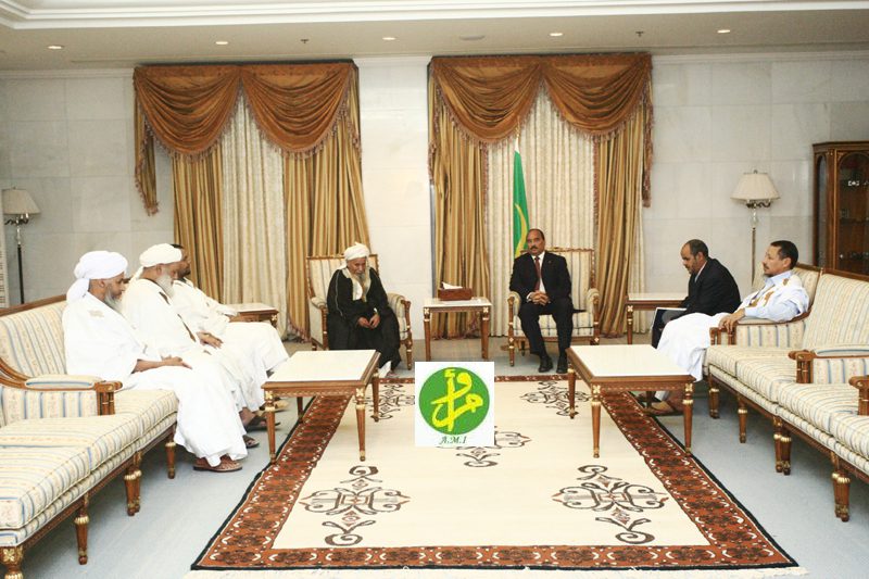 استقبل رئيس الجمهورية السيد محمد ولد عبد العزيز صباح اليوم الاربعاء بالقصر الرئاسي في نواكشوط عددا من كبار الفقهاء ومشايخ المحاظر الموريتانيين.