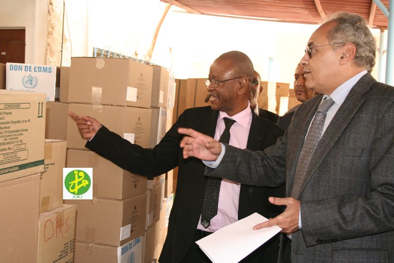 تسلم وزيرالصحة السيد باحسينو حمادي زوال اليوم الاثنين بمقر منظمة الصحة العالمية كمية من الأدوية، سلمها ممثل منظمة الصحةالعالمية في نواكشوط السيد جان بيير بابتيس.