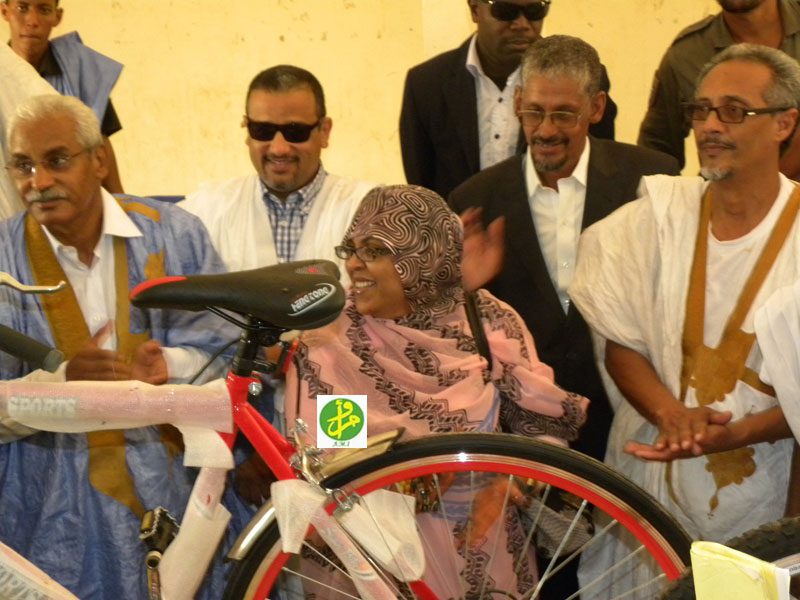 قدمت السيدة سيسه بنت الشيخ ولد بيده صباح اليوم الأحد في كيفة مجموعة من الدراجات الهوائية لشباب كيفة المنضوي في الأندية الثقافية والرياضية، في إطار جهود الحكومة الرامية إلى تشجيع الشباب على ممارسة الرياضة.