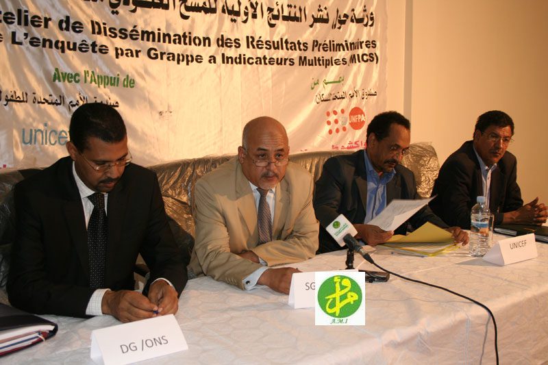 افتتحت اليوم الخميس في نواكشوط ورشة حول نشر النتائج الأولية للمسح العنقودي متعدد المؤشرات منظمة من طرف المكتب الوطني للا حصاء بالتعاون مع منظمة الأمم المتحدة للطفولة (اليونيسف) وصندوق الأمم المتحدة للسكان.