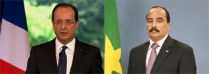اجرى رئيس الجمهورية السيد محمد ولد عبد العزيز بعد ظهراليوم الجمعة بلافآليت عاصمة مالطا مباحثات مع الرئيس الفرنسي افرانسوا هولاند وذلك على هامش القمة الثانية لمجموعة حوار خمسة زايد خمسة التى تحتضنها العاصمة المالطية حاليا.