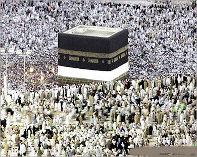 في مربع صغير يزدحم الحجاج ومبتغو فضل ربهم من أصحاب التجارة فيعز وجود مكان يجلس المرء فيه أحرى أن يضطجع.