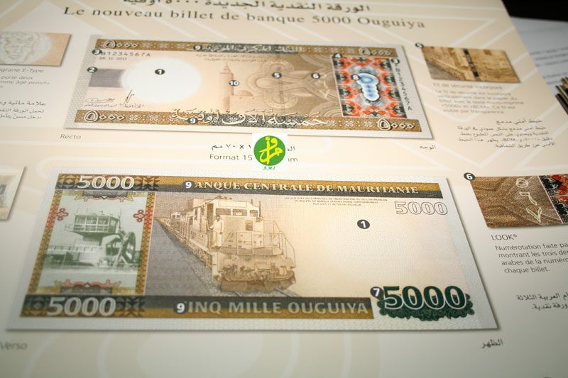 أصدر البنك المركزي الموريتاني اليوم الأربعاء ورقة نقدية جديدة من فئة 5000 أوقية يتم تداولها بالموازاة مع الورقة النقدية الحالية إبتداء من يوم غد الخميس.