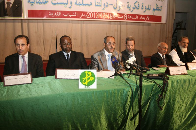 وأوضح وزيرالشؤون الاسلامية والتعليم الاصلى السيداحمد ولدالنيني أن موضوع الندوة يعكس التناغم التام في المضامين والمعانى السامية مع الثوابت الوطنية لسياسة البلاد،كما وما سبقق وأعلنه رئيس الجمهوريةالسيد محمد ولد عبدالعزيز”إن دولتنا دولة مسلمة وليست علمانية” .