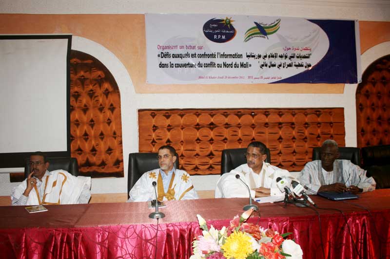 احتضنت نواكشوط مساء أمس الخميس ندوة حول التحديات التي تواجه الاعلام الموريتاني فى تغطية الصراع في شمال مالي والمنظمة من طرف رابطة الصحفيين الموريتانيين وتجمع الصحافة الموريتانية.