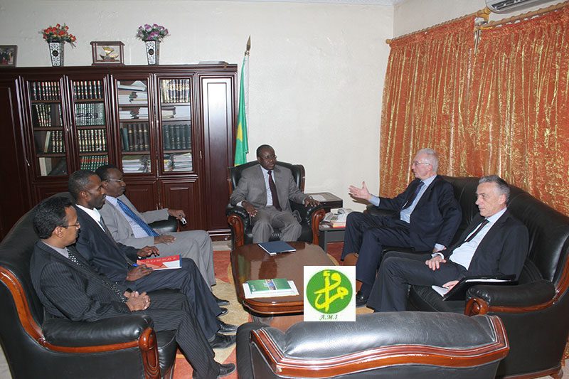 جرى اللقاء بحضورالأمين العام لوزارة العدل السيد كلي عمر سادا،والمكلف بمهمة السيد يعقوب ولد أحمد،والمستشار المكلف بالإتصال السيد عثمان ولد الشيباني،والسفير رئيس بعثة الإتحاد الأوروبي في نواكشوط سعادة السيد هانس جورج غاسترلويار.