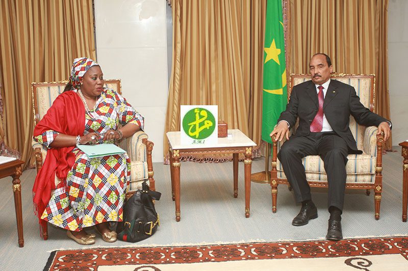 استقبل رئيس الجمهورية السيد محمد ولد عبد العزيز صباح اليوم الاثنين بالقصر الرئاسي في نواكشوط السيدة كمبا مار كاديو، الممثلة المقيمة لبرنامج الأمم المتحدة للتنمية في موريتانيا.