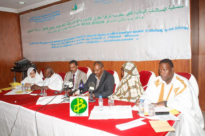 نظمت منسقية المنظمات غير الحكومية لترقية حقوق الانسان ودعم المواطنة مساء اليوم الاثنين في فندق وصال بنواكشوط مؤتمرا صحفيا بمناسبة انطلاق انشطتها.
