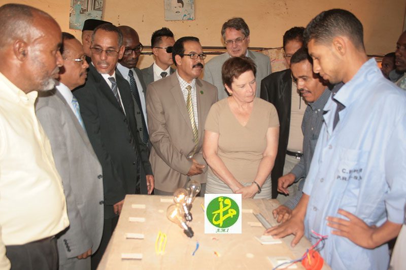 قامت السيدة جو ألين اباويل السفيرة الأمريكية المعتمدة في نواكشوط صباح اليوم الاثنين بزيارة لمركز التكوين المهني للمحاظر في نواكشوط. واطلعت السفيرة رفقة السيد محمد محمود ولد سيد أبات الأمين العام لوزارة الشؤون الإسلامية والتعليم الأصلى على الورشات والقطاعات التابعة للمركز.