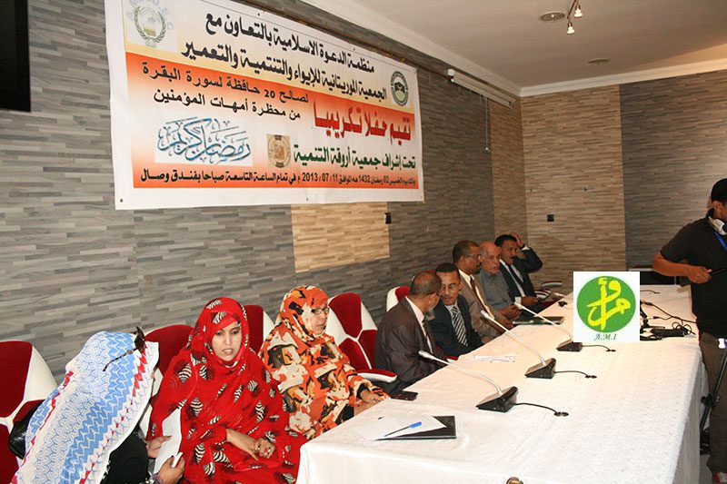 تم اليوم الخميس في فندق وصال بنواكشوط تكريم 20 امرأة من محظرة أم المؤمنين لحفظهن سورة البقرة، وذلك خلال حفل نظمته منظمة الدعوة الإسلامية بالتعاون مع الجمعية الموريتانية للايواء والتنمية والتعمير.