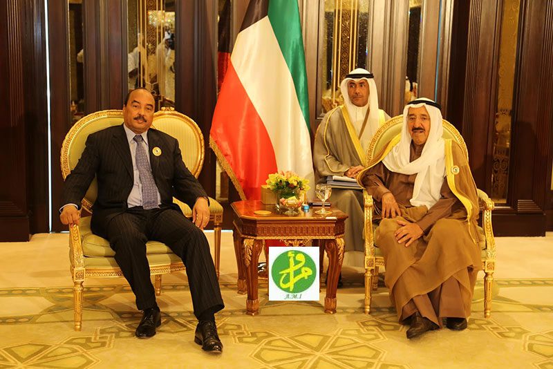 أجرى رئيس الجمهورية السيد محمد ولد عبدالعزيز اليوم الأربعاء في قصر بيان في الكويت مباحثات مع صاحب السمو الملكي الشيخ صباح الأحمد الجابرالصباح أمير دولة الكويت.
