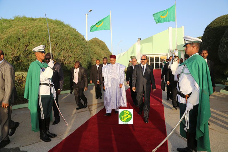 غادر السيد محمادو ايسوفو رئيس جمهورية النيجر نواكشوط صباح اليوم الاثنين في نهاية زيارة لبلادنا، شارك خلالها في أشغال القمة الأولى لمجموعة الدول الخمس في الساحل التي احتضنتها العاصمة بدعوة من رئيس الجمهورية السيد محمد ولد عبد العزيز وبمشاركة رؤساء اتشاد والنيجر ومالي وبوركينا افاسو.