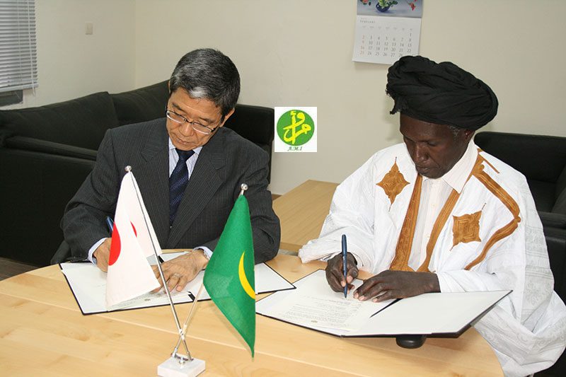 تم صباح اليوم الاثنين في نواكشوط توقيع العقدالمتعلق بتوسعة مدرسة أهل علي الواقعة في بلدية أجار بولاية غيدي ماغه،من طرف سعادة السيدجون يوشيدا سفيراليابان لدى موريتانيا والسيد ممادو دجاد جي سي رئيس اتحاد التعاونيات الرعوية والزراعية والبيئية من أجل تنمية غيدي ماغه.