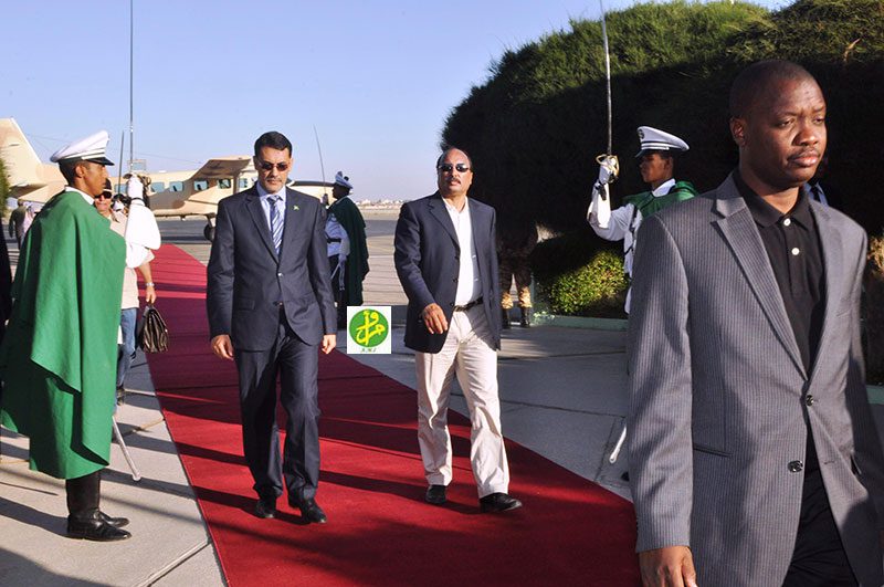 واستقبل رئيس الجمهورية في المطار من طرف وزير الداخلية واللامركزية السيد محمد ولد احمد سالم ولد محمد راره وعدد من اعضاء الحكومة وقائد الاركان الخاصة لرئيس الجمهورية والمدير المساعد لديوان رئيس الجمهورية وكالة ووالي نواكشوط ورئيسة مجموعتهاالحضرية.
