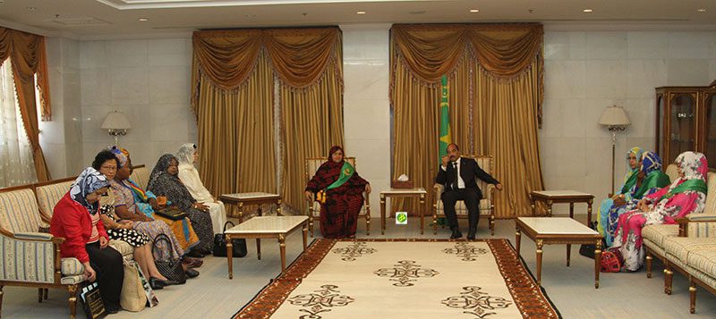 استقبل رئيس الجمهورية السيد محمد ولد عبد العزيز صباح اليوم الثلاثاء بالقصر الرئاسي في نواكشوط رئيسة وأعضاء مكتب شبكة النساء المنتخبات محليا في افريقيا برئاسة السيدة فاطمة منت عبد المالك.