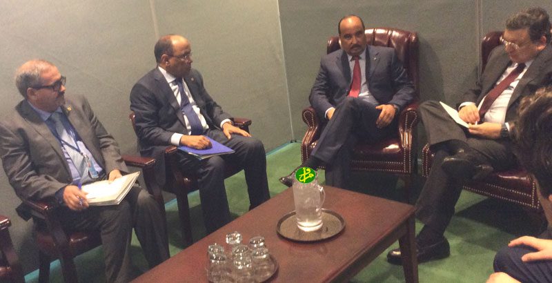 استقبل رئيس الجمهورية رئيس الاتحاد الافريقي السيد محمد ولد عبد العزيز، اليوم الثلاثاء بمقر الامم المتحدة في نيويورك السيد خوسي مانويل آباروزو رئيس اللجنة الأوروبية الذي يشارك في قمة المناخ التي بدأت في وقت سابق من اليوم في نيويورك بدعوة من الأمين العام للامم المتحدة.