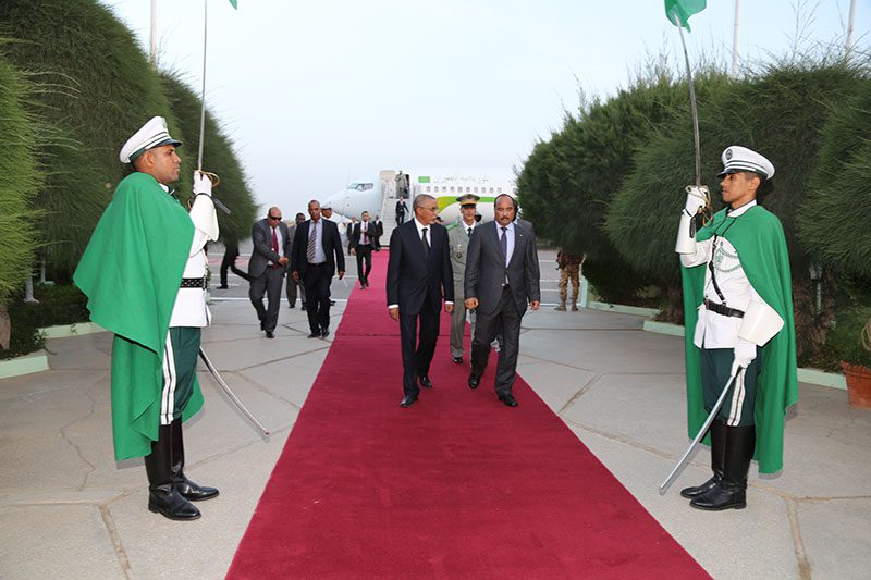 واستقبل رئيس الجمهورية في المطار من طرف الوزير الاول السيد يحي ولد حدمين وعدد من أعضاء الحكومة والمدير المساعد لديوان رئيس الجمهورية ووالي نواكشوط ورئيسة مجموعته الحضرية.