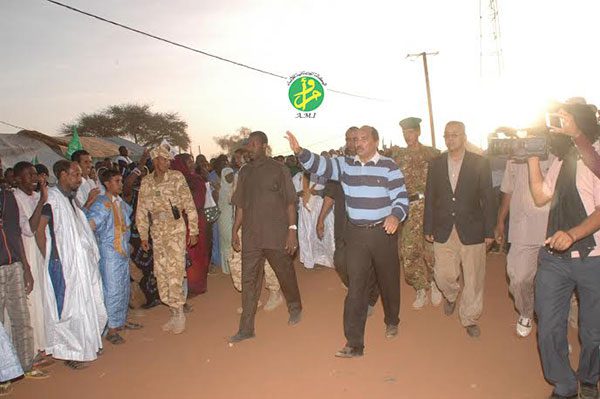 واستقبل رئيس الجمهورية الذي كان مرفوقا بوالي الحوض الغربي لدى نزوله من سلم الطائرة من طرف حاكم المقاطعة السيد محمد ولد النامي وعمدتها السيد محمد ولد حرطان قبل أن يصافح منتخبي ووجهاء وأطر المقاطعة الذين اصطفوا في طوابير طويلة لاستقباله.