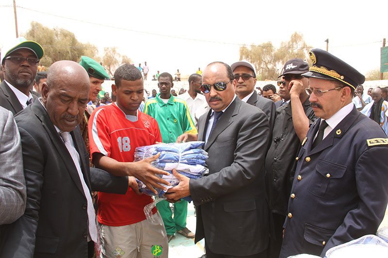 أشرف رئيس الجمهورية السيد محمد ولد عبد العزيز اليوم الاثنين بدار الشباب القديمة في كيفه، ضمن برنامج زيارته الحالية لولاية لعصابه، على توزيع تجهيزات ومعدات رياضية على عدد من الأندية والروابط الشبابية بولاية لعصابه خدمة لترقية الرياضة، مقدمة من قبل وزارة الشباب والرياضة .