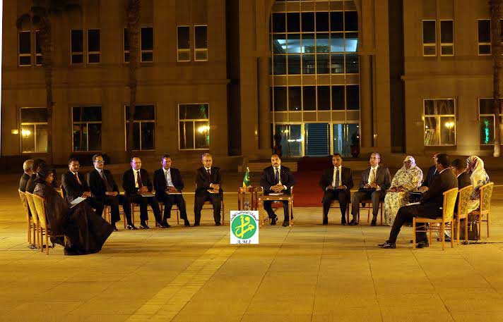 وحضراللقاء الصحفي الوزير الأمين العام لرئاسة الجمهورية الدكتور مولاي ولد محمد لقظف و وزراء النفط والطاقة والمعادن والصحة والاسكان والعمران والاستصلاح الترابي والزراعة والبيطرة والتجهيز والنقل والتهذيب الوطني والمياه والصرف الصحي.