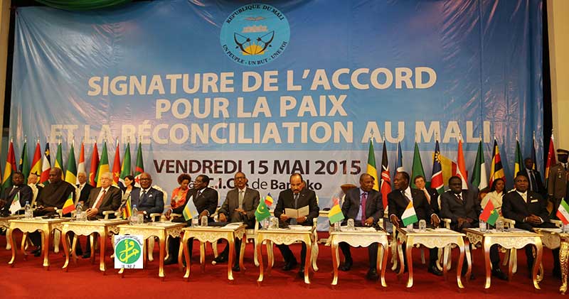 انطلق بقصر المؤتمرات في باماكو حفل التوقيع على اتفاقية السلم والمصالحة في مالي بحضور رئيس الجمهورية السيد محمد ولد عبد العزيز، ورئيس زيمبابوي رئيس الاتحاد الافريقي روبرت موغابي ورؤساء مالي وغينيا والنيجر ونيجيريا وغانا ورئيس مجلس الأمة الجزائري وأعضاء هيئة الوساطة بين الفرقاء الماليين.