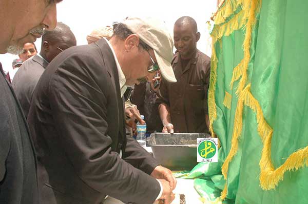 وضع رئيس الجمهورية السيد محمد ولد عبد العزيز، صباح اليوم الاحد وضمن برنامج زيارته لولاية اترارزه حجر الاساس للمخطط العمراني الجديد لواد الناقة.