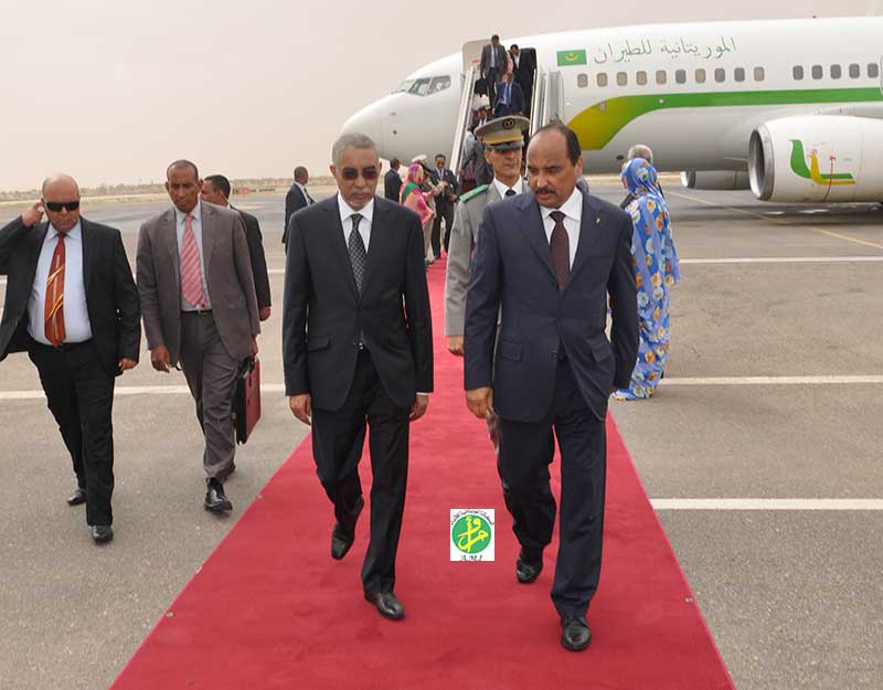 واستقبل رئيس الجمهورية بالمطار من قبل الوزير الأول السيد يحيى ولد حدمين وعدد من أعضاء الحكومة وقائد الأركان الخاصة لرئيس الجمهورية والمدير المساعد لديوان رئيس الجمهورية ووالي نواكشوط الغربية ورئيسة مجموعة نواكشوط الحضرية والسفير المصري المعتمد لدى موريتانيا سعادة السيد أحمد محمد فاضل يعقوب.
