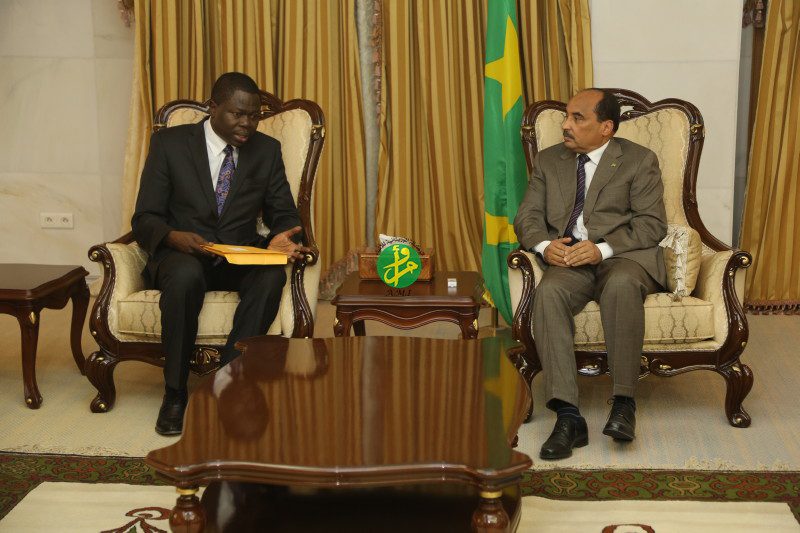استقبل رئيس الجمهورية السيد محمد ولد عبد العزيز صباح اليوم الثلاثاء بالقصر الرئاسي في نواكشوط الاداري المكلف بموريتانيا لدى صندوق النقد الدولي السيد انغيتو تيرينا يامبايا،الذي يزور بلادنا حاليا.