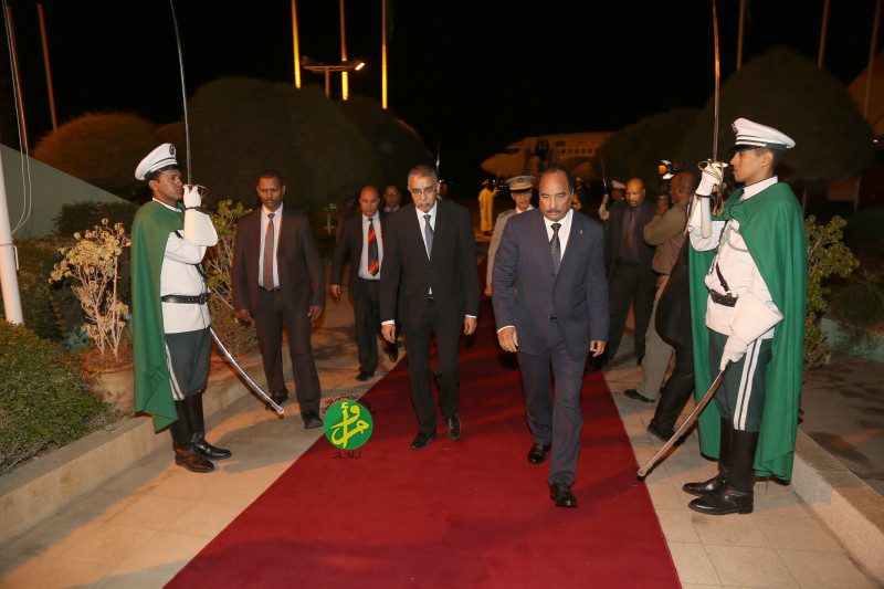 عاد رئيس الجمهورية السيد محمد ولد عبد العزيز، إلى نواكشوط فجر اليوم السبت، قادما من حفر الباطن ( المملكة العربية السعودية)، حيث حضر هناك يومي 10 و 11 مارس الجاري الحفل الختامي لتمرين رعد الشمال الذي أقيم في مدينة الملك خالد العسكرية والعروض العسكرية والجوية المصاحبة له.
