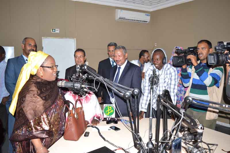 واستقبلت الوزيرة عند مدخل الاذاعة من طرف مديرها العام السيد محمد الشيخ ولد سيدي محمد، رفقة كبار معاونيه.