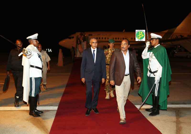 وقد استقبل رئيس الجمهورية بمطار نواكشوط الدولي من طرف الوزير الأول السيد يحيى ولد حدمين وعدد من أعضاء الحكومة وقائد الأركان الخاصة لرئيس الجمهورية والمدير المساعد لديوان رئيس الجمهورية ووالي نواكشوط الغربية ونائب رئيسة مجموعة نواكشوط الحضرية.