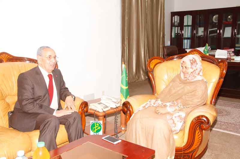 استقبلت وزيرة الزراعة السيدة لمينه بنت القطب ولد امم مساء اليوم الاثنين بمكتبها بالوزارة بنواكشوط سعادة السيد عبد الرحمن بنعمر، سفير المملكة المغربية الشقيقة المعتمد لدى موريتانيا.